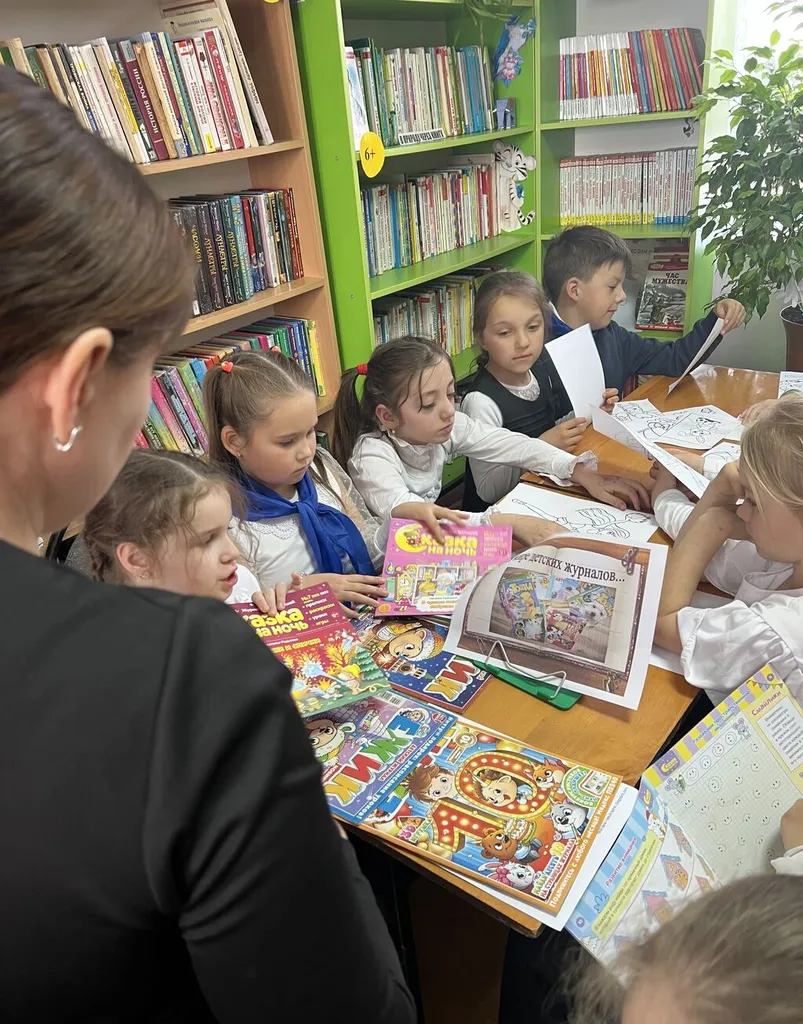 В Неделю детской книги, для ребят 1-х классов, сотрудниками библиотеки был проведен час периодики «В мире детских журналов». Библиотекарь познакомила школьников с термином «периодические издания», дети выяснили, чем отличается газета от журнала.